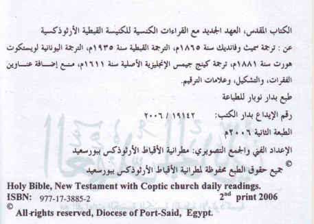 وهذه طبعة جديدة تابعة للمطرانية الارثوذكسية ببورسعيد كما هو مكتوب عليها