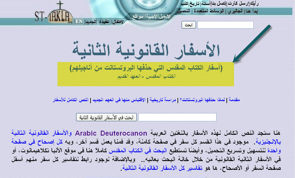 موقع الانبا تكلا يؤكد ان الاسفار القانونية الثانية حذف البروتستانت